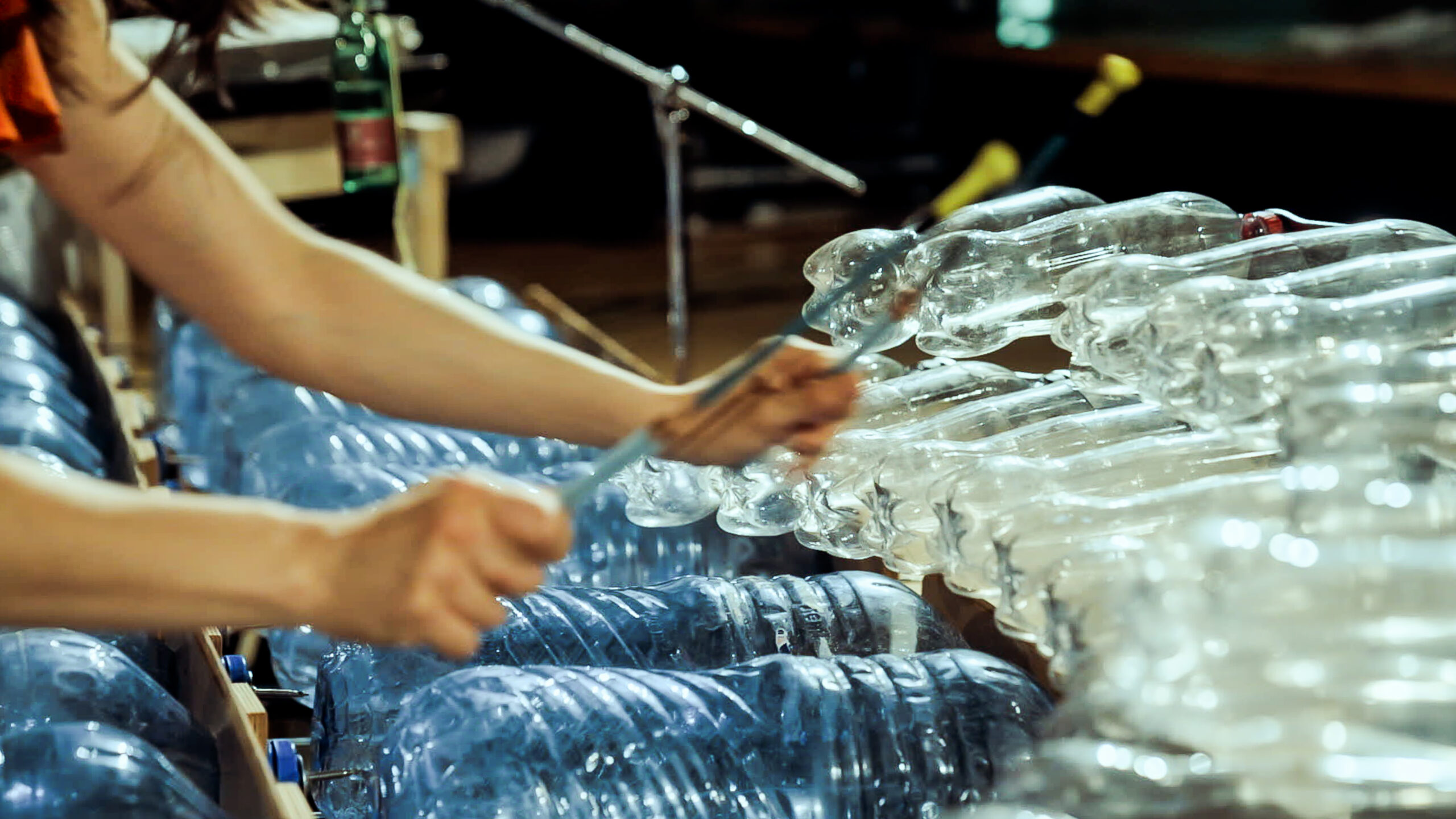 - Plastikflaschen Marimba – Recycling Concerto – Standbild aus der SWR Video Produktion – Credit SWR Kultur